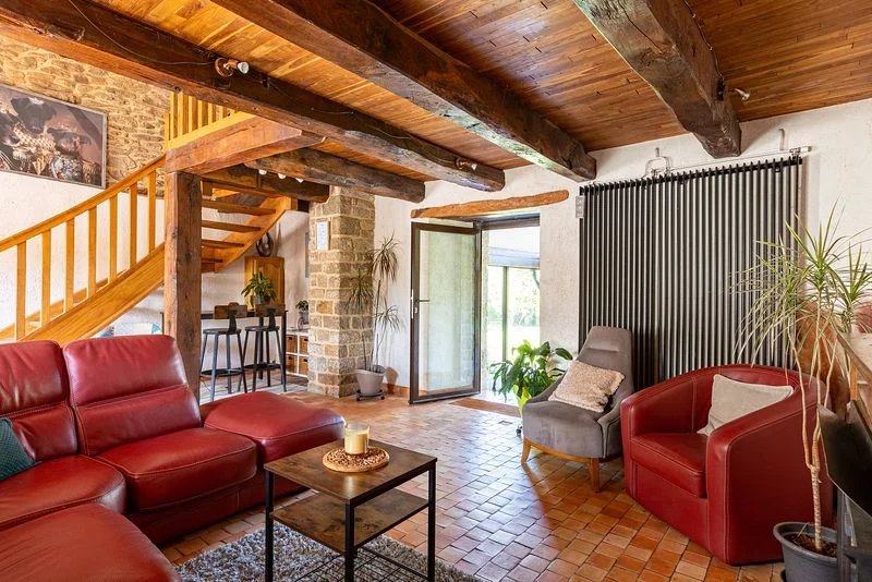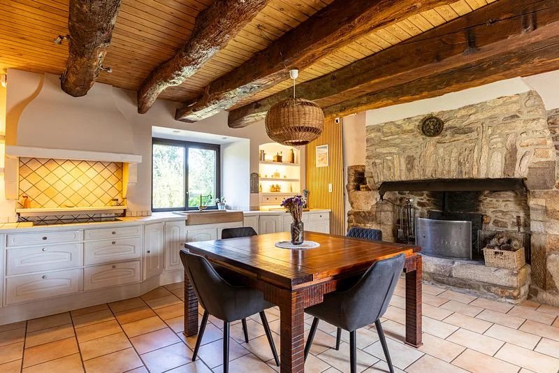 Cette belle longère en pierres d’environ 230 m2 est composée d’une grande cuisine avec cheminée, un salon avec sa cheminée insert pour les soirées d’hiver, un espace bibliothèque/jeux avec sa cheminée, ainsi qu’une grande véranda tournée sur un très beau jardin arboré de plus de 4000 m2.