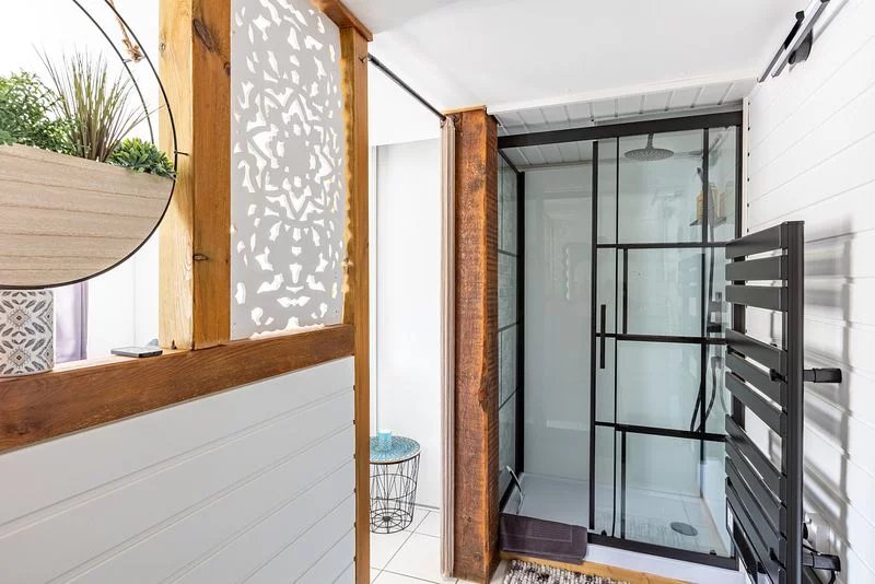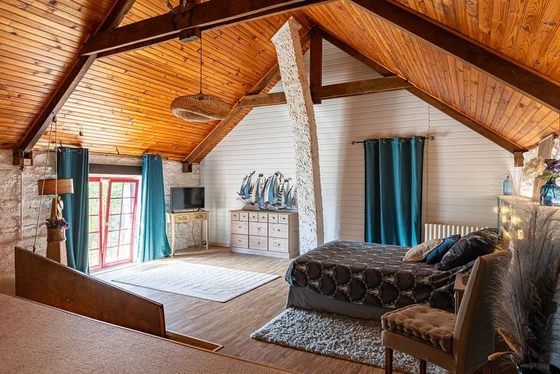 A l’étage: 2 suites parentales , 2 chambres, salle de bain et une grande mezzanine viennent compléter cette maison de famille où se dégage une atmosphère chaleureuse et authentique.