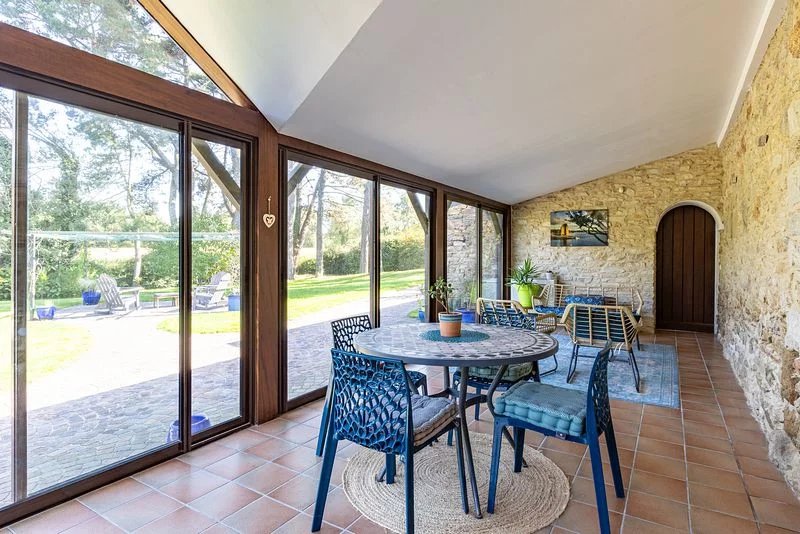 Cette belle longère en pierres d’environ 230 m2 est composée d’une grande cuisine avec cheminée, un salon avec sa cheminée insert pour les soirées d’hiver, un espace bibliothèque/jeux avec sa cheminée, ainsi qu’une grande véranda tournée sur un très beau jardin arboré de plus de 4000 m2.
