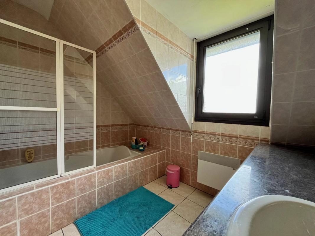 À l’étage, une grande mezzanine offrant un espace supplémentaire, 3 belles chambres, salle de bain et WC séparé.