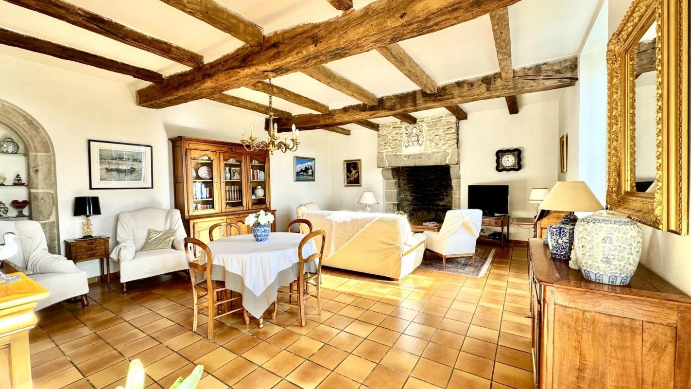 Au RDC : Grande entrée, cuisine équipée et aménagée, Séjour-salon (43 m²) avec cheminée d’époque, buanderie.