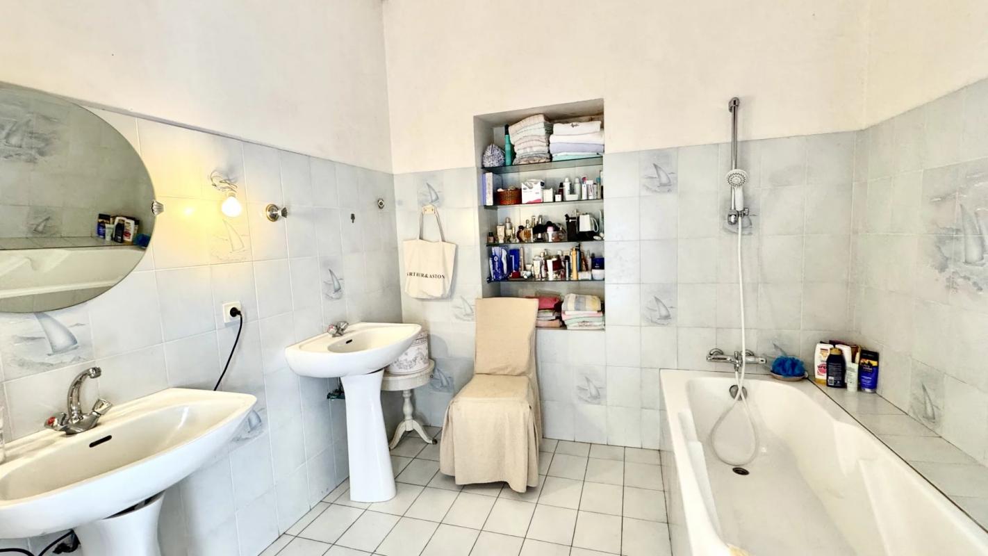 A l’étage : 3 chambres dont une avec SDB, SDE, WC.