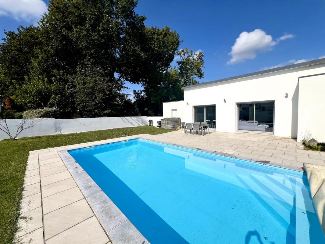 À l’extérieur, un jardin intime et paysager accueille une piscine chauffée récente (8 x 4 m), idéale pour profiter des beaux jours en toute quiétude.
