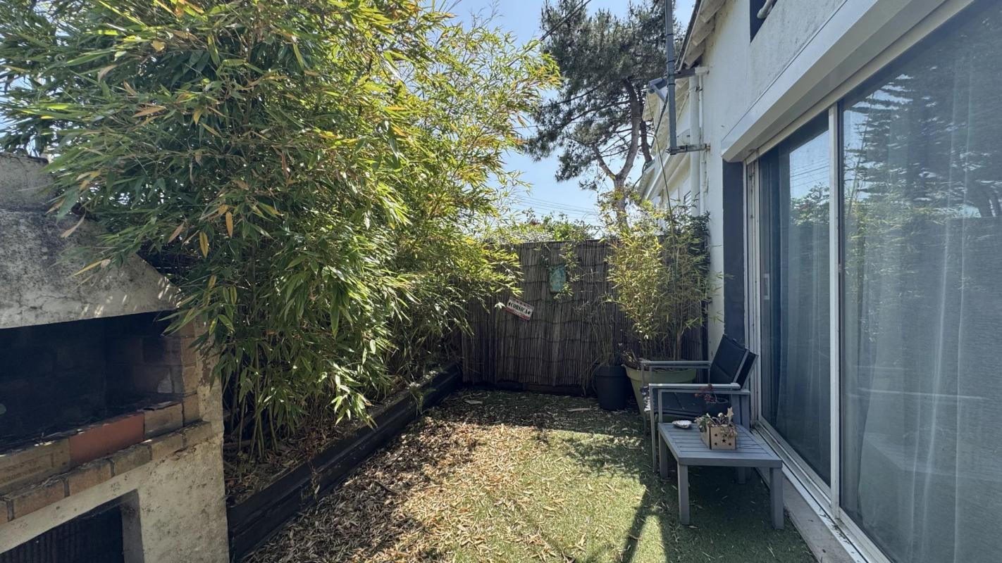 Jardin clos avec petite vue sur la mer . Deux places de parking, abris de jardin, deux terrasses à l’Est et à l’Ouest. Le tout sur 420 m² de parcelle environ.
