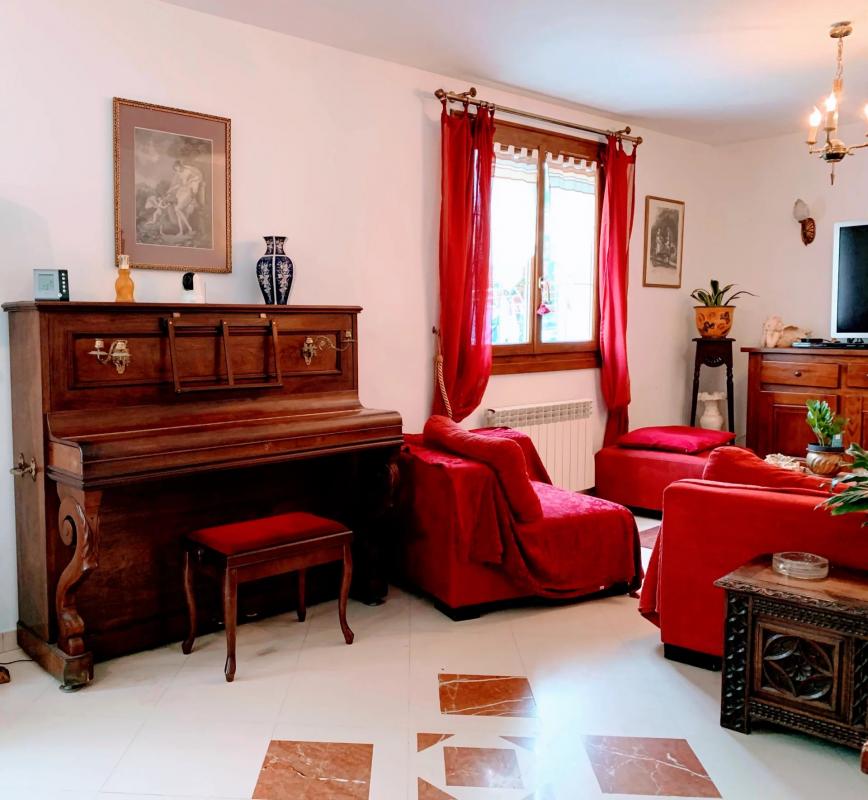 Au rez-de-chaussée, une entrée dessert une spacieuse pièce de vie lumineuse sur sol en marbre, une cuisine aménagée et équipée, ainsi qu’une arrière-cuisine pratique. Vous y trouverez également une chambre, une grande salle de bains avec WC, et de grands placards de rangement.