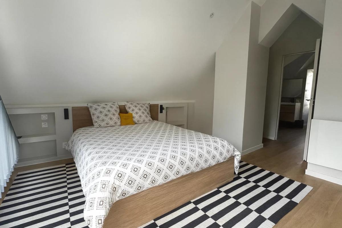 deux chambres de 9 m² avec placards avec accès sur une terrassede 23 m², une salle d’eau, toilettes séparées et espace buanderie.