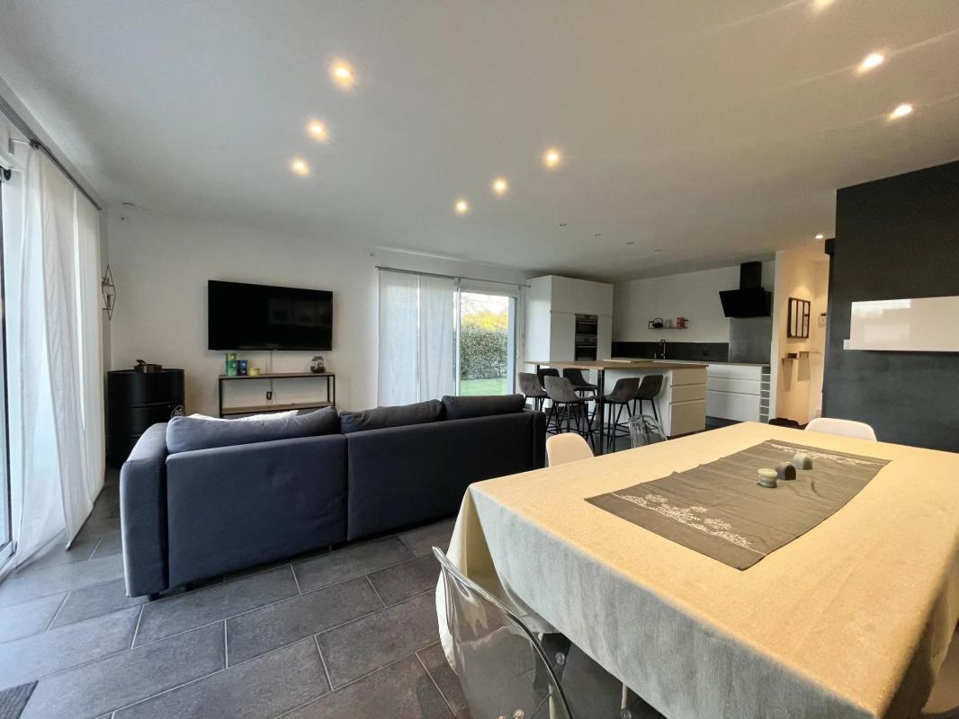 Située à proximité du centre-ville, cette belle maison de plain-pied récente offre un cadre de vie confortable et pratique. Elle se compose d’un séjour lumineux ouvert sur une cuisine équipée, de trois chambres, d’une salle de bain, ainsi que d’un garage et d’une buanderie.