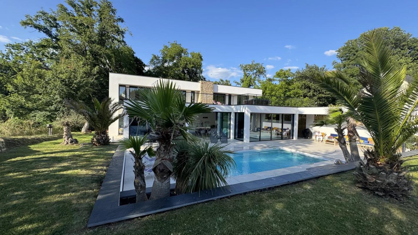 Au rez-de-chaussée une très grande entrée dessert la pièce de vie (112 m²) composée d’un espace salon et salle à manger avec cuisine équipée et aménagée avec plan de travail en marbre du Brésil, tournée vers l’espace piscine avec pool house et solarium, 2 suites parentales avec SDE douche à l’italienne et SDB ( deux espaces douches, baignoire balnéo), dressing aménagé, bureau, très grande buanderie avec de nombreux rangements et cuisine bis équipée.
