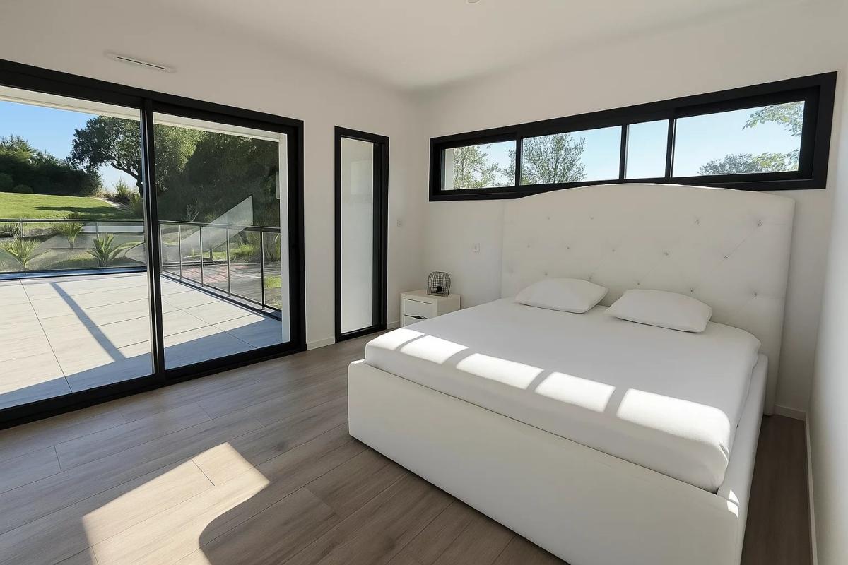 MAGNIFIQUE maison contemporaine de plus de 320 m² habitables aux lignes épurées et résolument moderne idéalement située en fond d’impasse à quelques pas des sentiers côtiers de VANNES, de la mer et de Conleau.