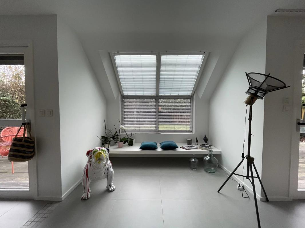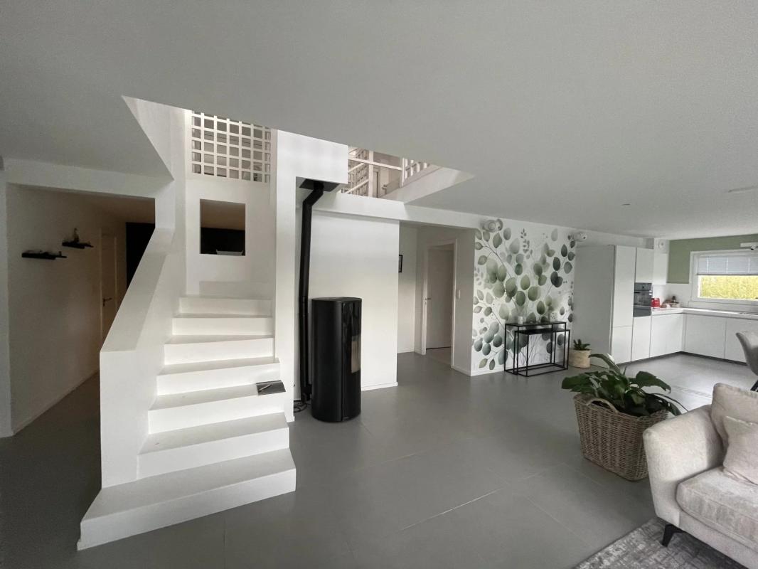 Elle offre une grande entrée avec dressing, une lumineuse pièce de vie orientée plein sud sur une belle terrasse sans vis à vis. Une grande cuisine de renom Bulthaup, un espace salon autour d’un poêle à pellet, un espace comtemporain arty.