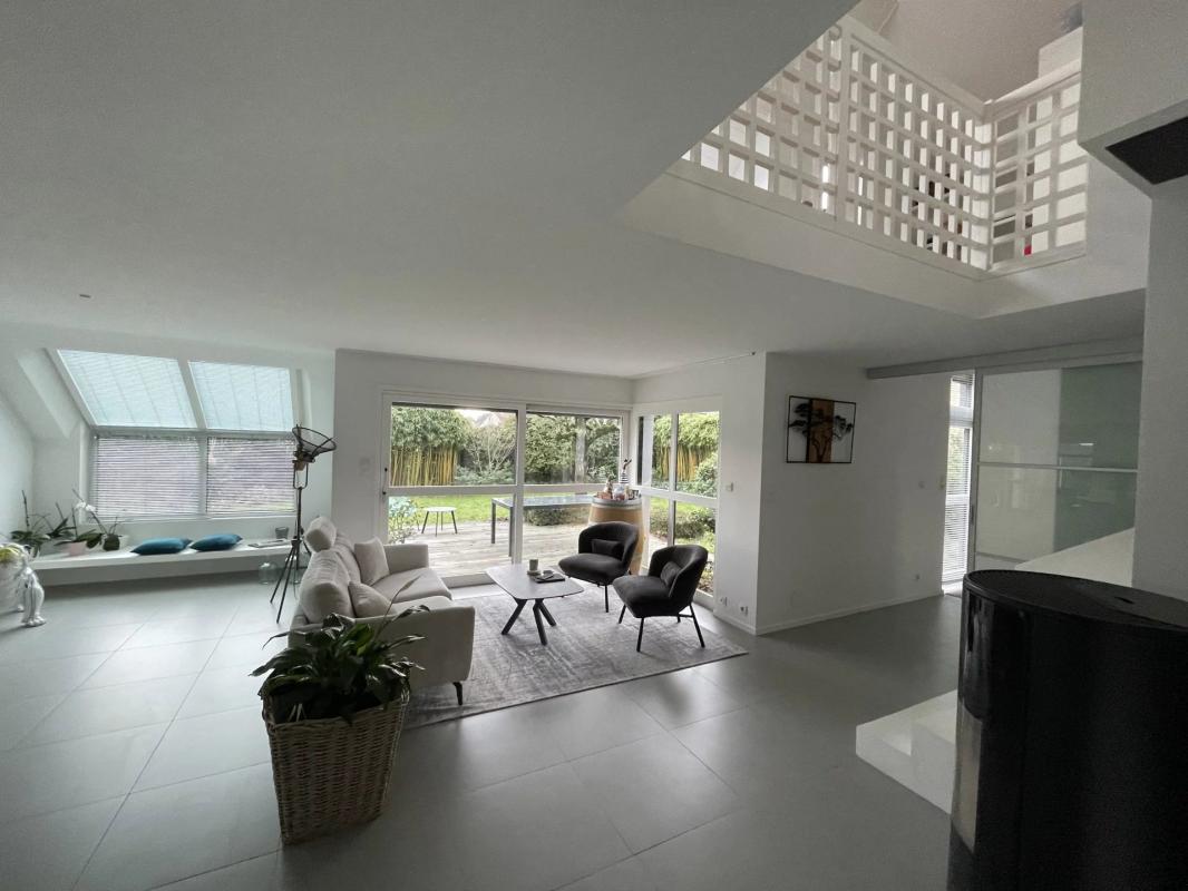 L’agence Le Rouzic Immobilier vous présente une belle maison contemporaine au style de l’architecte Yves Guillou, rénovée, sur la rive droite du port de Vannes, aperçu du golfe du Morbihan.