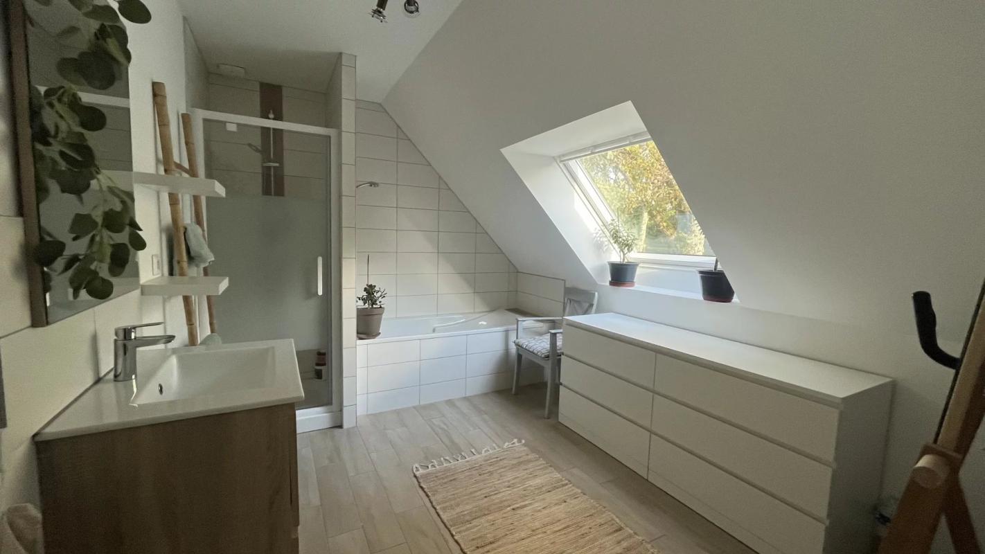 Cette confortable maison vous propose un vaste séjour (52m2) exposé sud ouvert sur le jardin avec cuisine intégrée aménagée et équipée, une véritable suite parentale de plus de 23m2 avec sa terrasse privée, une buanderie et des toilettes invités. A l’étage, deux grandes chambres, un bureau et une salle de bains avec douche et baignoire. Un abri de jardin complète le bien.