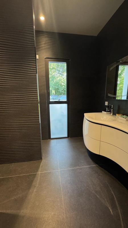 Au rez-de-chaussée une très grande entrée dessert la pièce de vie (112 m²) composée d’un espace salon et salle à manger avec cuisine équipée et aménagée avec plan de travail en marbre du Brésil, tournée vers l’espace piscine avec pool house et solarium, 2 suites parentales avec SDE douche à l’italienne et SDB ( deux espaces douches, baignoire balnéo), dressing aménagé, bureau, très grande buanderie avec de nombreux rangements et cuisine bis équipée.