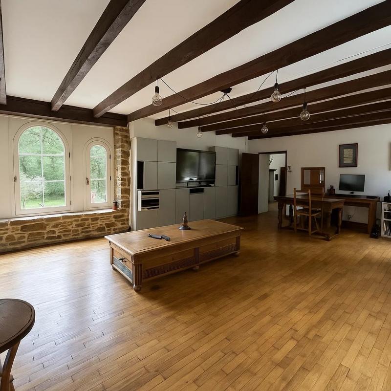 Belle propriété dans un cadre verdoyant à 12 minutes de la gare de Vannes; comprenant un moulin du XVIII ème de 170 m² habitable avec 3 chambres, buanderie et chaufferie de 76 m².