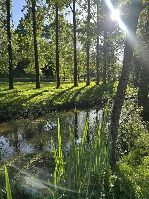 La rivière passent sur la propriété, un pont en bois vous permet de faire des promenades dans ce cadre bucolique.