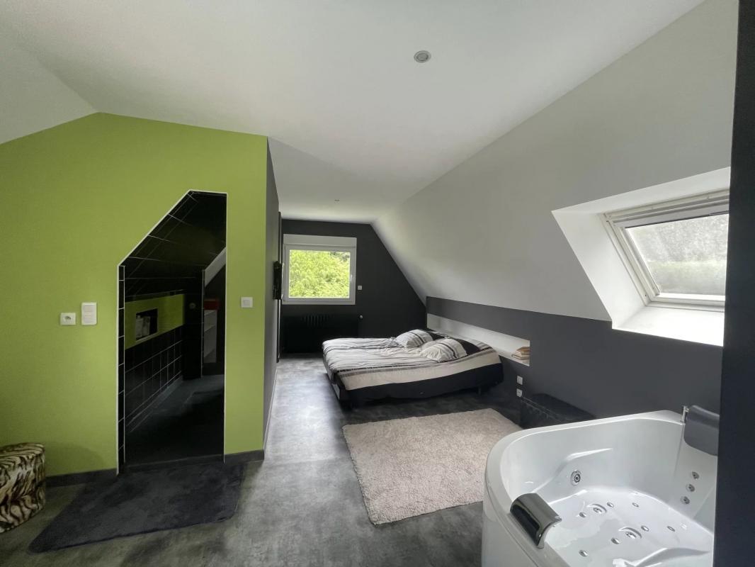 A l’étage, le palier dessert deux chambres, un dressing, une salle de bain, un toilette et une suite parentale avec salle de douche et une baignoire double balnéo.