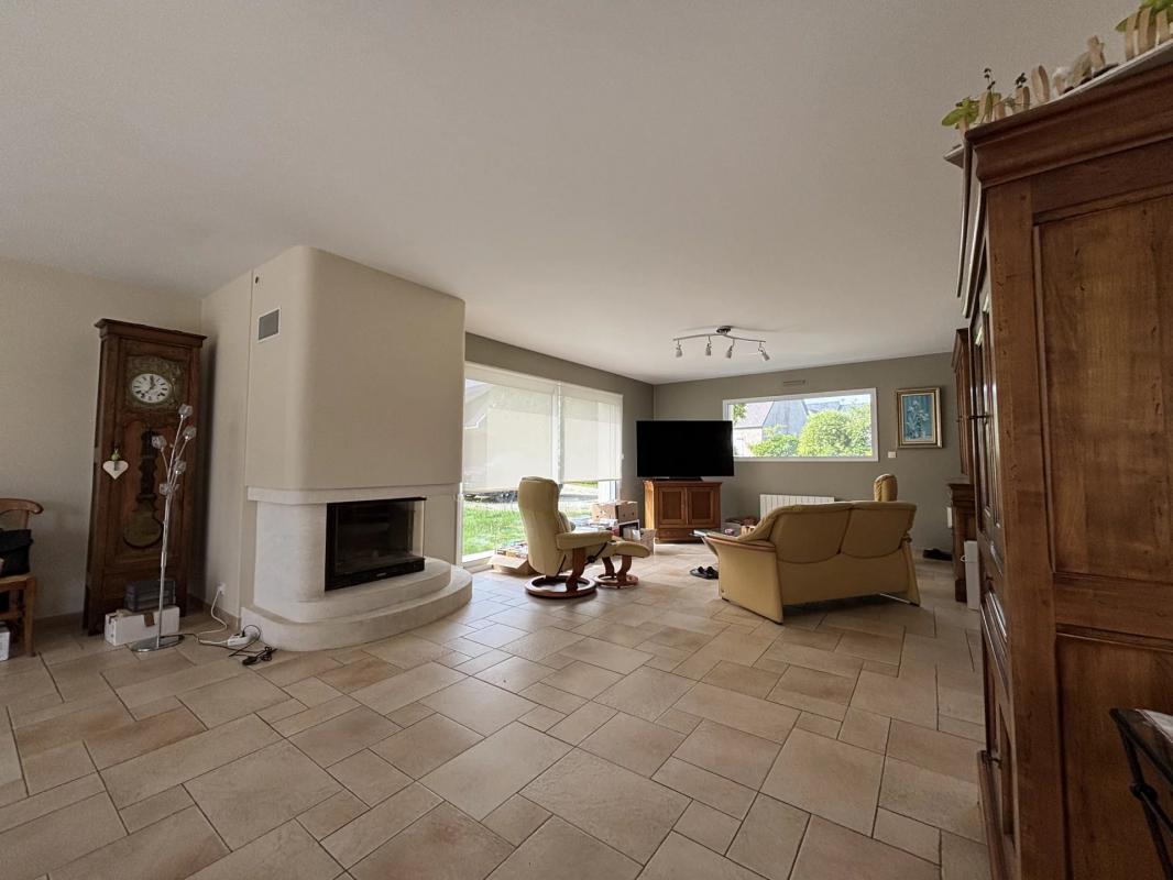 Au rez-de-chaussée, vous découvrirez une belle entrée avec placards, une magnifique pièce de vie de près de 55 m² très lumineuse avec sa cheminée, une belle cuisine E/A ouverte en L avec un cellier attenant.