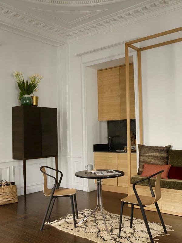 Vous y trouverez un grand lit confortable, ainsi qu’un coin séjour accueillant, pensé pour se relaxer en toute tranquillité. Un espace bureau discret et fonctionnel complète l’ensemble, parfait pour travailler dans un cadre inspirant. La cuisine, moderne et bien équipée, permet de préparer facilement vos repas au quotidien. Enfin, la salle d’eau, élégante, apporte tout le confort nécessaire.