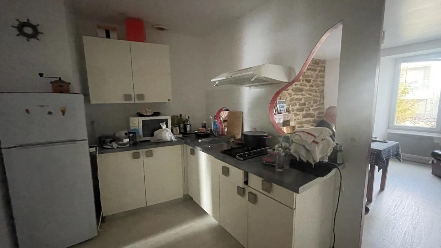 LE ROUZIC IMMOBILIER vous présente cet appartement de type T2 situé au 1er étage comprenant : entrée, séjour – salon, cuisine équipée ouverte, chambre en alcove, SDE WC.