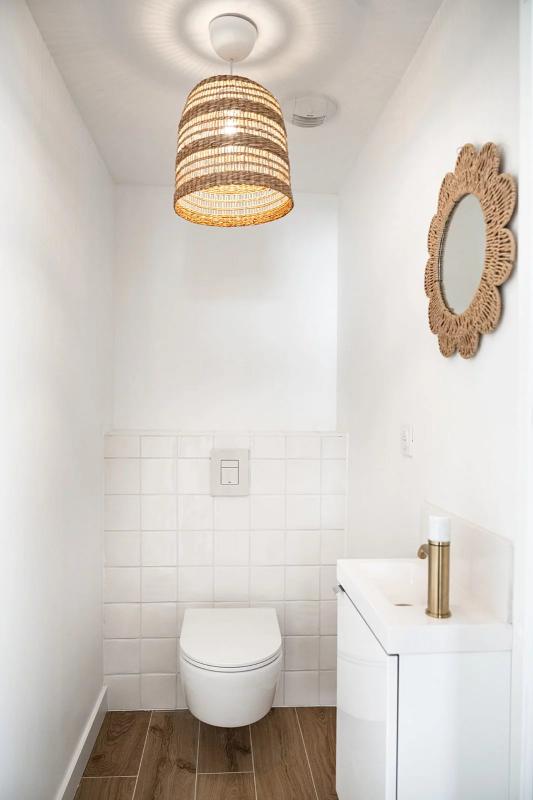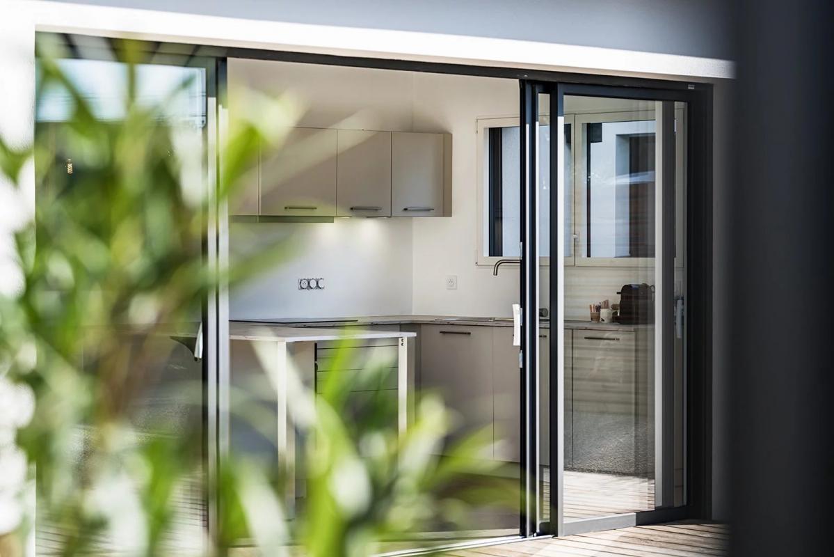 Elle se compose d’une entrée, d’un magnifique séjour chaleureux avec de grandes ouvertures sur l’extérieur proposant une vie dedans/dehors comme on en rêve.